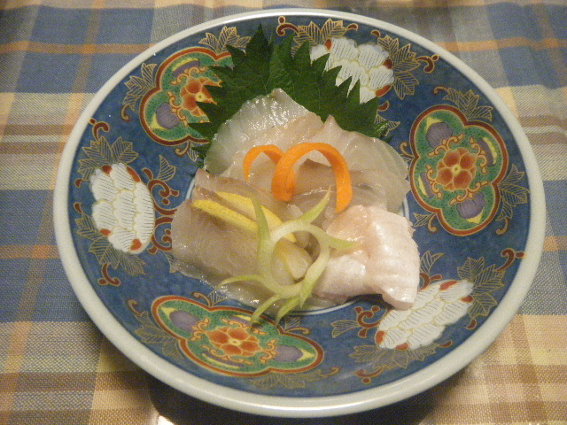 イシガレイの薄造りはポン酢で~