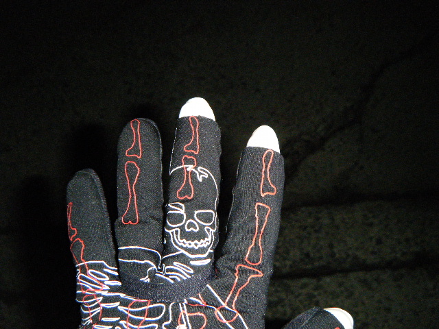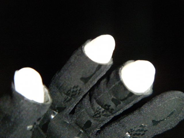 指なしグローブのインナーとして薄手のゴム手袋装着